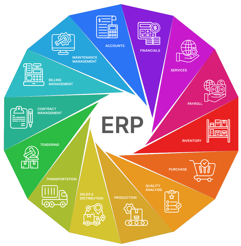 Our ERP integrates various business processes and functions across an organization into a unified platform. ERP systems typically cover areas such as accounts, finance, payroll, inventory, purchasing, sales, billing, transportation, supply chain management, manufacturing, and contract management. They enable organizations to streamline their operations, improve efficiency, and make more informed decisions by providing real-time data.